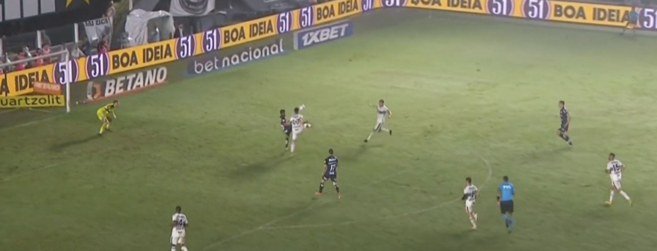Marcos Leonardo fez um GOLAÇO em Santos x Coritiba, mas o bandeirinha marcou impedimento, e o VAR confirmou pic.twitter.com/STLqRw5Gz8