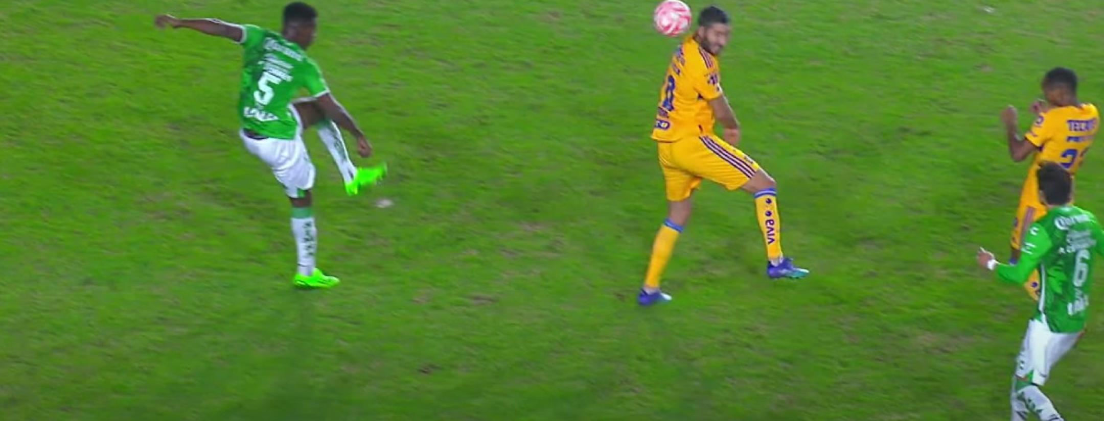 André-Pierre Gignac acabó en la cama de un hospital luego de recibir un terrible pelotazo en la nuca durante un amistoso entre Tigres y Santos Laguna.