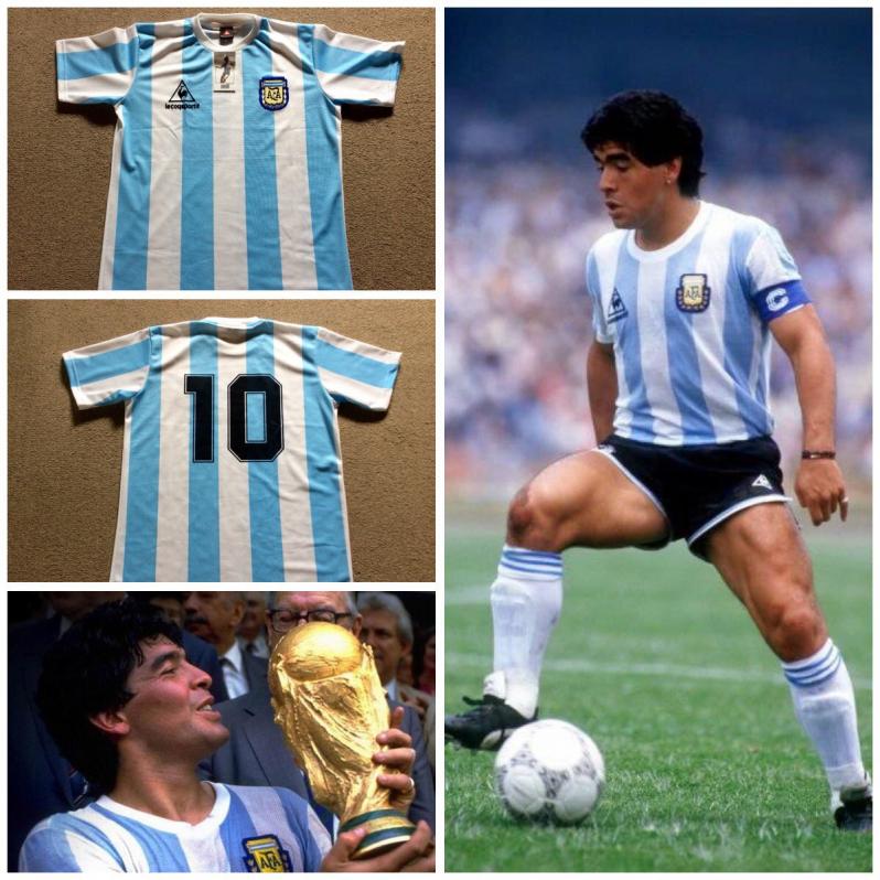 Need a more emblematic image than this one? Diego Armando Maradona won the 1986 World Cup in this stunning jersey.