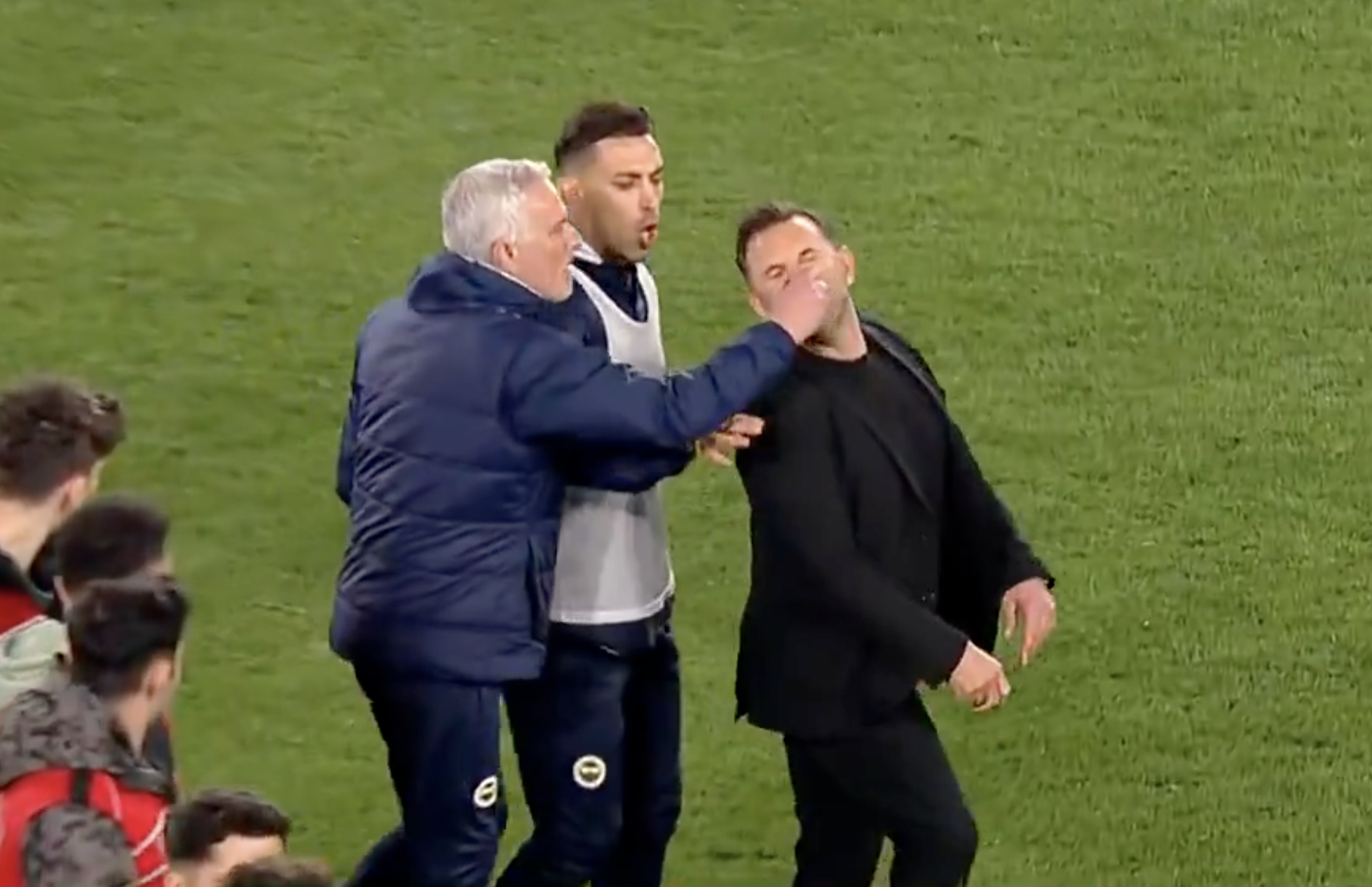 José Mourinho could be in big trouble after he was seen grabbing the opposing manager’s nose following Fenerbahce’s 2-1 defeat to Galatasaray in the Turkish Cup on Wednesday.