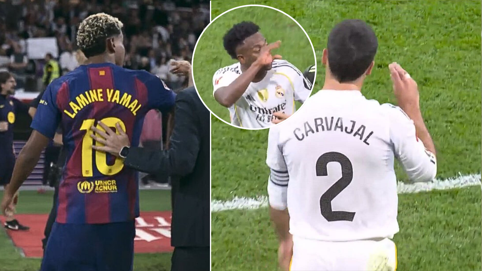 The final whistle also brought a series of pushes and shoves between the clubs, led by Lamine Yamal and Vini Jr. who exchanged words as they walked towards the locker room. Dani Carvajal, who was said to wanted to speak to Yamal following some comments ahead of El Clásico, appeared to have signaled that the young FC Barcelona phenom had 'spoken too much.'